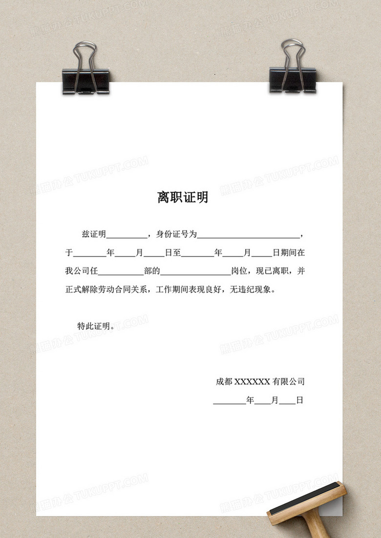 本作品内容为离职证明word模板, 格式为 doc, 大小1 MB, 页数为1, 请使用软件Word(2016)打开, 作品中主体文字及图片可替换修改,文字修改可直接点击文本框进行编辑,图片更改可选中图片后单击鼠标右键选择更换图片,也可根据自身需求增加和删除作品中的内容, 源文件无水印, 欢迎使用熊猫办公。 如认为平台内容涉嫌侵权,可通过联系客服提出书面通知,我们将及时处理。