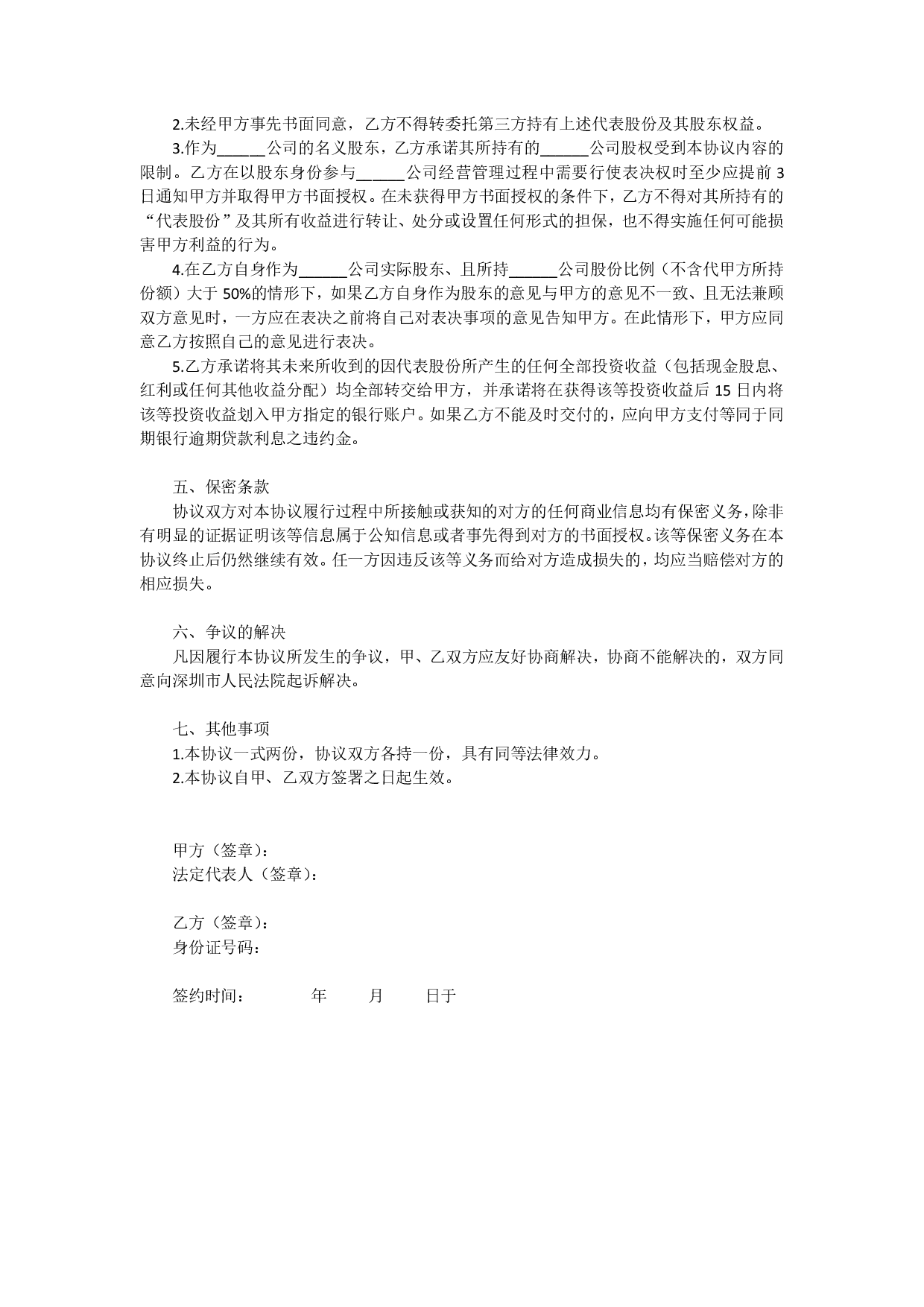 股权代持协议书 股权代持协议书